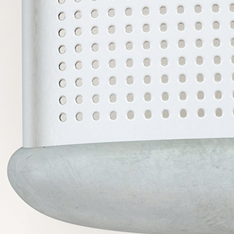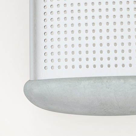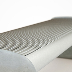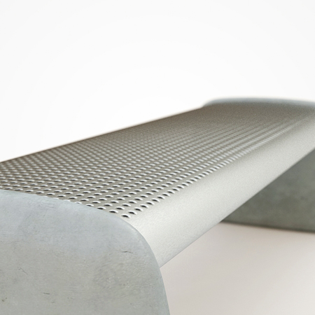 Developed as urban furniture for high traffic public spaces, its concrete supports, in conjunction with a perforated steel sheet bench create an extremely durable product that remains visually aesthetic.
